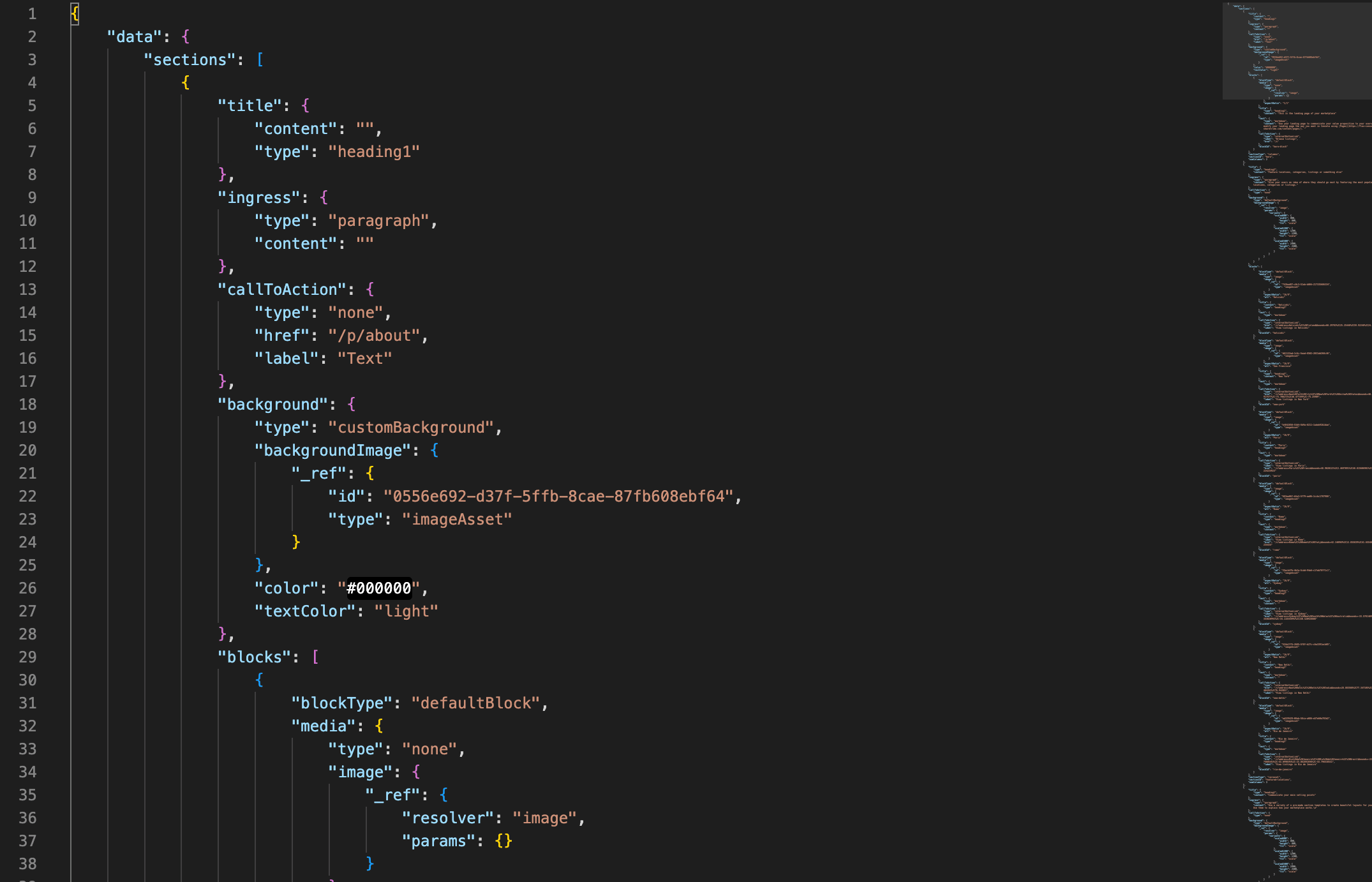 This is the raw JSON API response that encodes the content and structure you have entered into Console. Try pasting the response into your preferred code editor to make it easier to interpret: