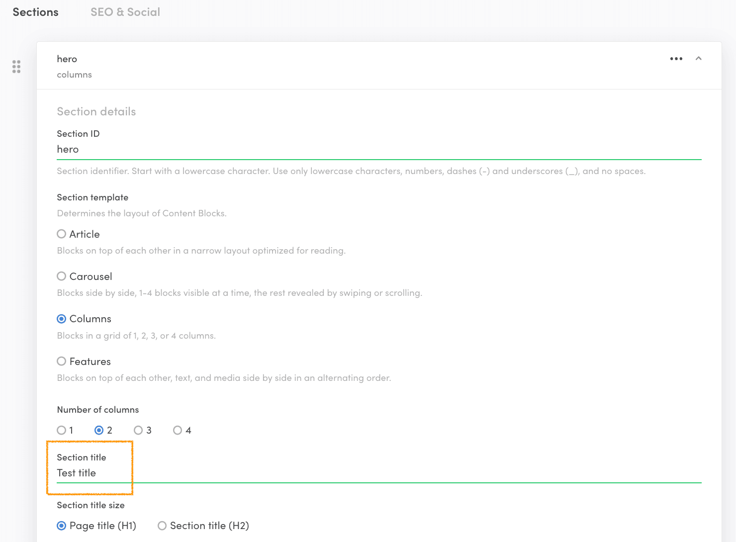 To see how changes in the Console are reflected in the actual data, let’s make a change to the landing page through Console. Edit the title value through the Page Editor: