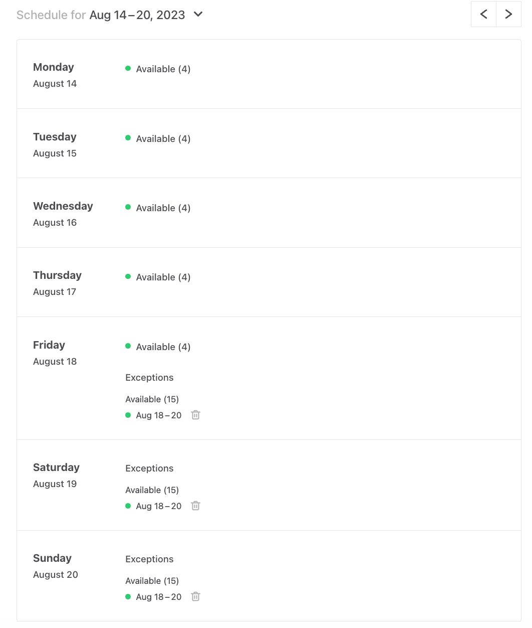 In this guide, we are using day-based listings.